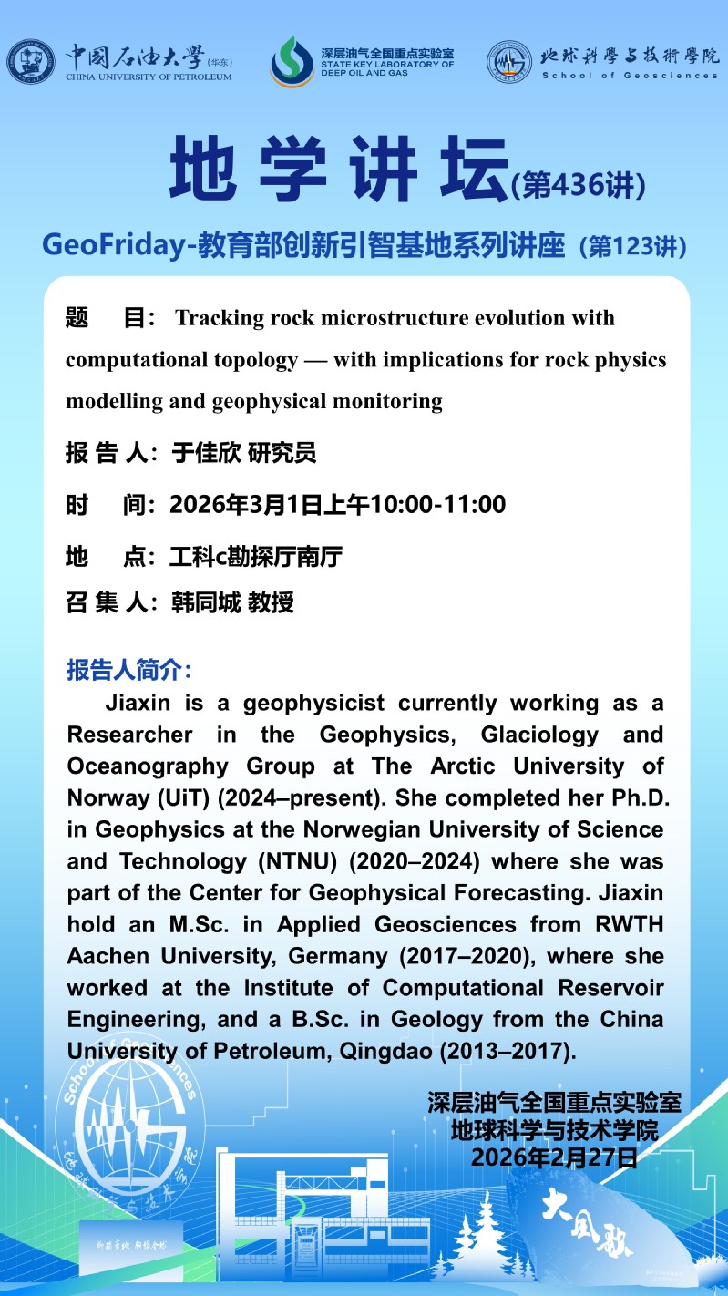Geofriday 123rd | Researcher Yu Jiaxin:Tracking rock microstructure evolution with computational topology — with implications for rock physics modelling and geophysical monitoring